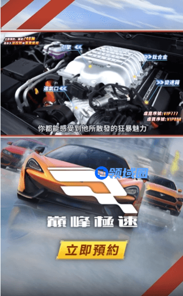 在中国台湾地区,由龙邑游戏代理发行《巅峰极速》,游戏在10月19日上线,上线前全平台预注册超80万,目前在免费榜已霸榜五天。据App Growing Global,从9月21日至今,《巅峰极速》的广告投放总数为4804,从买量素材来看,功能为“事前预约”,主要聚焦在“拟真手感”、“速度感”以及开服送240抽,并配备知名引擎及跑车吸引赛车圈的中重度玩家。