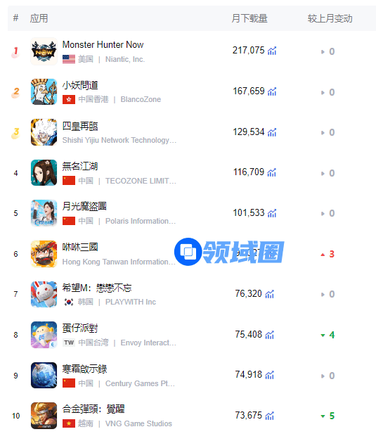 《无名江湖》是弘程游戏所擅长的武侠放置RPG品类,9月5日在台湾地区上线后,九月下载量榜排名为第4。这款游戏今年1月在大陆地区上线,目前仍保持在TOP200以内。