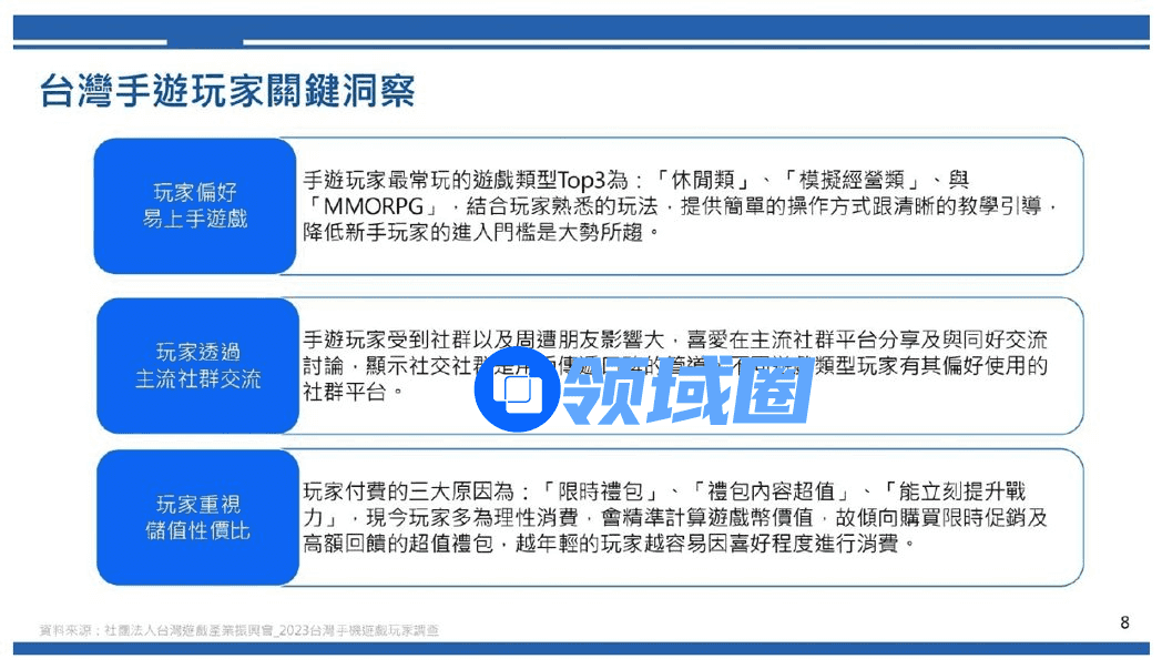 根据Sensor Tower《2022年移动游戏应用报告》,台湾已经取代德国成为全球第五大手游市场。据data.ai2023年8月数据显示,台湾手游收益前十名的游戏类型为休闲、MMORPG和竞技。因为文化和玩家口味相似,中国港澳台地区往往是国产游戏出海过程中测试市场的第一站。