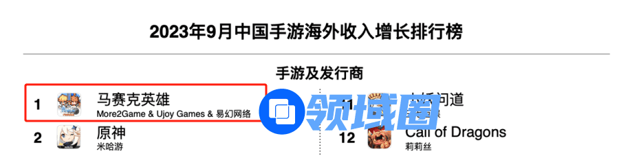 《马赛克英雄》登顶9月国产游戏出海收入增长榜,收入榜第11