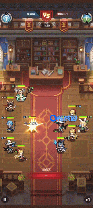 另外,《马赛克英雄》的前期战斗很少有类“刮痧”的感受,在自动战斗设置下,英雄彼此之间的技能配合输出非常具备视觉爽感。通常在收尾阶段,接在“初遇之弓”捷利卡的群攻之后,是安纳塔迅速突刺、收割残血,并且如果击杀目标,这一大招可重复释放,直到战斗结束。