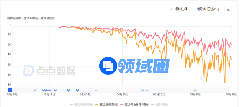 在中国港澳台地区,《马赛克英雄》上线后的前四月在畅销榜Top 60区间浮动,随后便显露疲态,目前在百名左右浮动。这或许与游戏内获取材料的效率有关,这段时间也与“1024抽”的游戏福利时间正好相对应。当小R及零氪玩家快速地将免费内容消耗殆尽,高氪玩家抵达天花板,将降低游戏付费率。