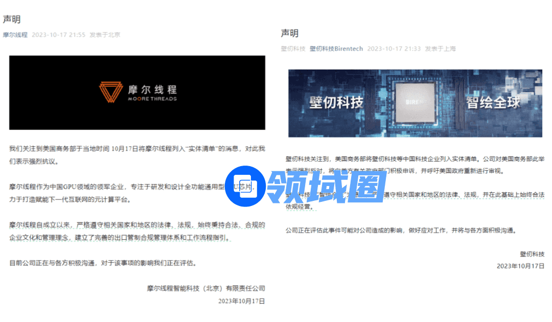 此外,作为新规的一部分,包括摩尔线程和壁仞科技在内的13家公司和相关子公司也被列入最新的黑名单,从名单中可以明显看出此举是为了限制我国算力相关的包括AI(人工智能)等产业的发展。