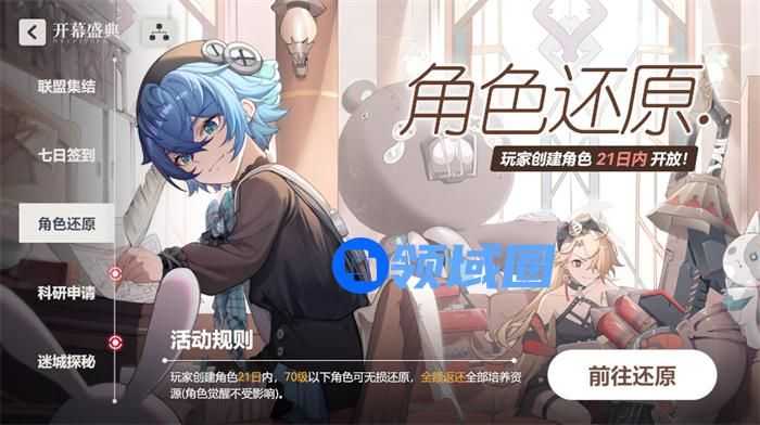 此外,为助力代理团长更好的培养剧团演员进行冒险和演出,特开放「建角21天」养成重置活动,在玩家账号创建的21天内,凡是70级以下的角色都可以进行完全免费的养成还原,系统将会对角色的等级、突破和技能等级的培养还原为初始状态,同时百分百返还对应的养成消耗材料!