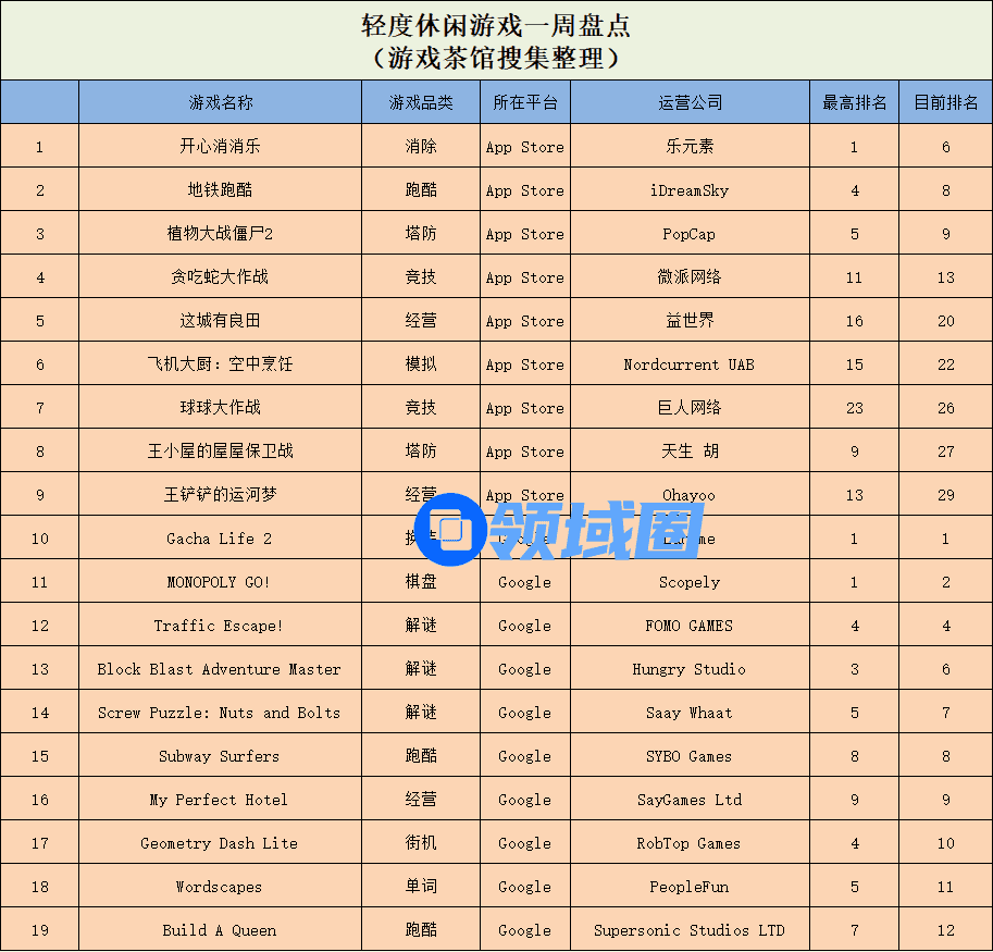 休闲新游周报每周统计微信小游戏、QQ小游戏、抖音小游戏、硬核小游戏以及App Store和Google Play上的新游爆款,并按照分类制作表格,将游戏排名情况等信息公布,希望给到行业同侪帮助。