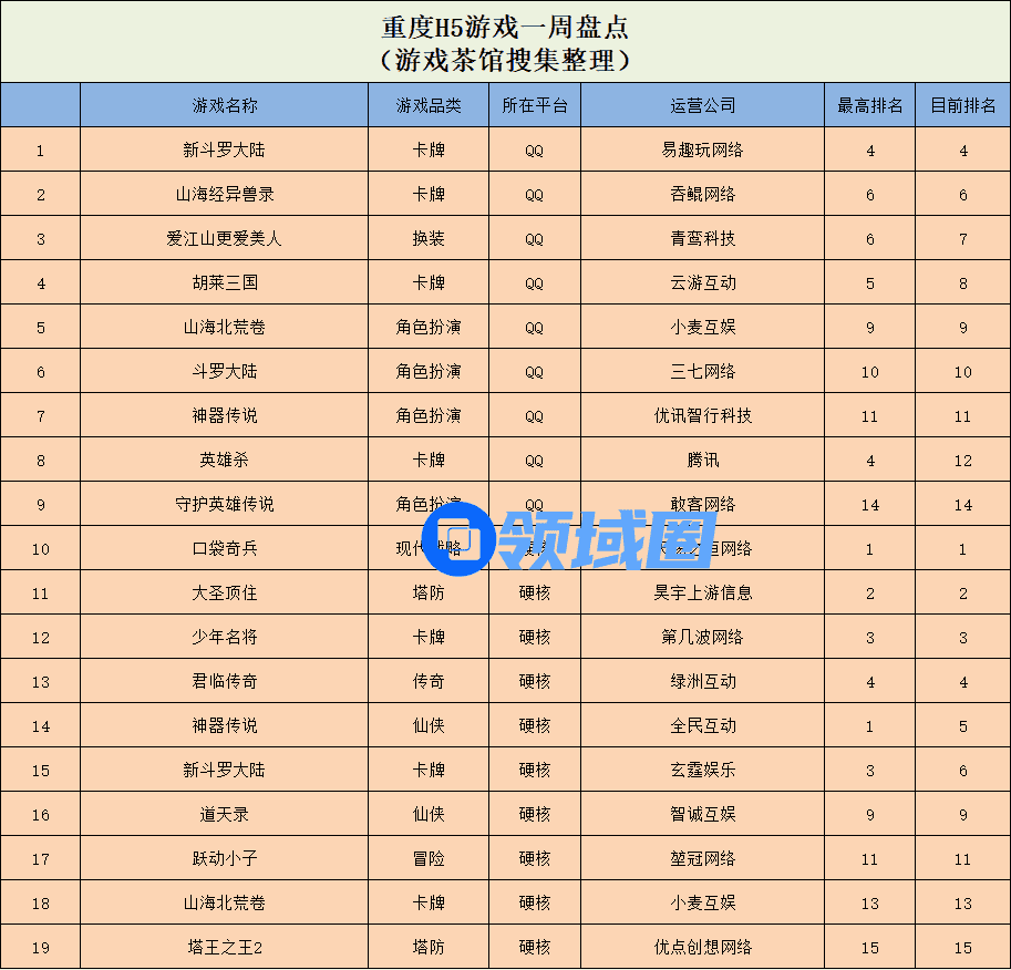 重度游戏方面,在QQ小游戏畅销榜单中,《新斗罗大陆》排名上升,并直接拿下本周重度游戏魁首,卡牌游戏《山海经异兽录》和换装玩法的养成游戏《爱江山更爱美人》紧随其后,分别拿下了QQ小游戏畅销榜单第6名和第7名。同时,敢客网络旗下角色扮演游戏《守护英雄传说》也在本周登上了QQ小游戏畅销榜前列,且其当前位于榜单第14名。