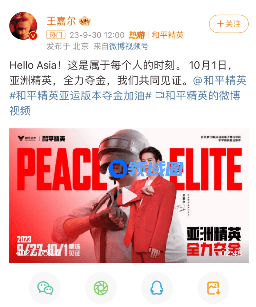 《和平精英》携手品牌代言人王嘉尔,为亚运健儿呐喊助威,也实现了互通共赢,在明星资源的合理利用下,《和平精英》迸发了更强大的价值,也同时为明星积累更多人气,最终达到明星形象与游戏品牌的双赢。未来,相信《和平精英》也将持续探索电竞开放性,为电竞体育化与电竞、娱乐融合带来更多想象力。