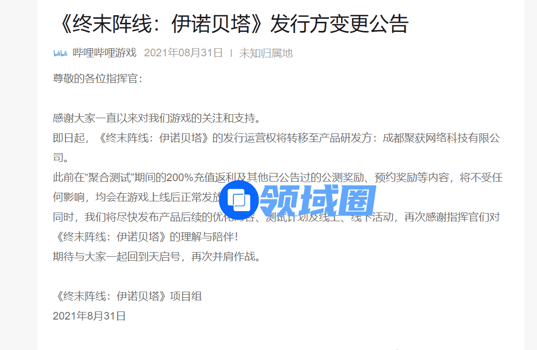这件事情的直接结果有两个。第一,《伊诺贝塔》延迟上线,用大量的时间与精力对游戏进行全方位的“重制”。第二,作为国服独代的发行商B站宣布与其解约,《伊诺贝塔》由成都聚获自行发行。
