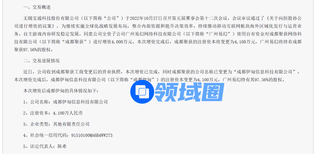 今年3月,聚获网络宣布更名为成都伊甸科技。同月,宝通发布增资公告,对成都聚获网络增资4000万人民币,宝通的百分百控股子公司易幻网络作为聚获的大股东持有其97.56%的股权,显然这个承载着开拓二次元赛道的聚获已经被完全并入易幻体系。