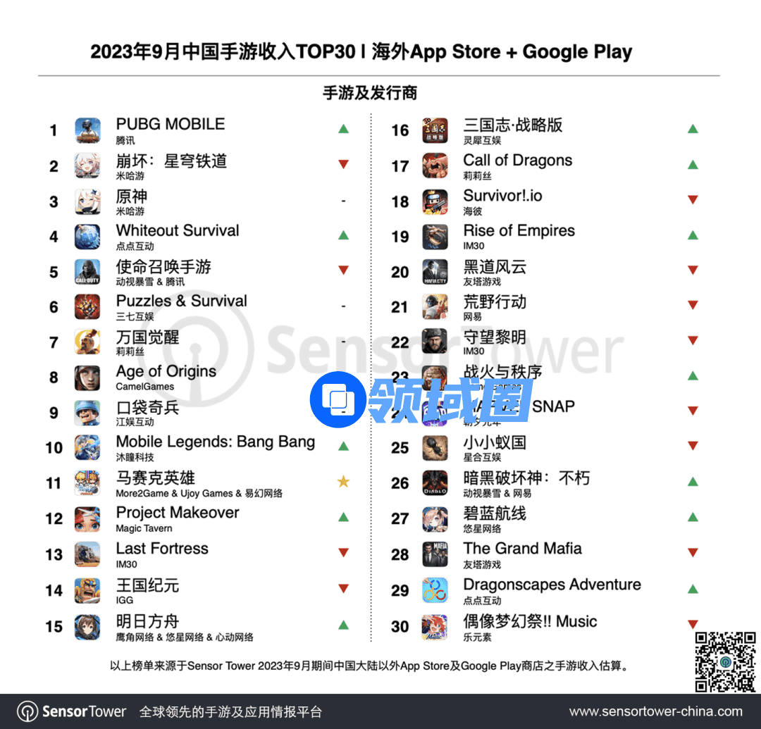 回合制RPG游戏《星穹铁道》无疑是今年米哈游旗下的“黑马”。它在4月26日全球上线时就以“迅雷不及掩耳”之势,迅速占领美国、日本等多个国家的免费榜首。据Sensor Tower报告,其上线阶段同期的吸金力更是超过《原神》:《星穹铁道》上线10天,全球总营收超过1亿美元,是《原神》的1.2倍。据Sensor tower统计,截至7月,《星穹铁道》的全球总营收已达5亿美元;其在9月也同样位列中国手游收入第二名。
