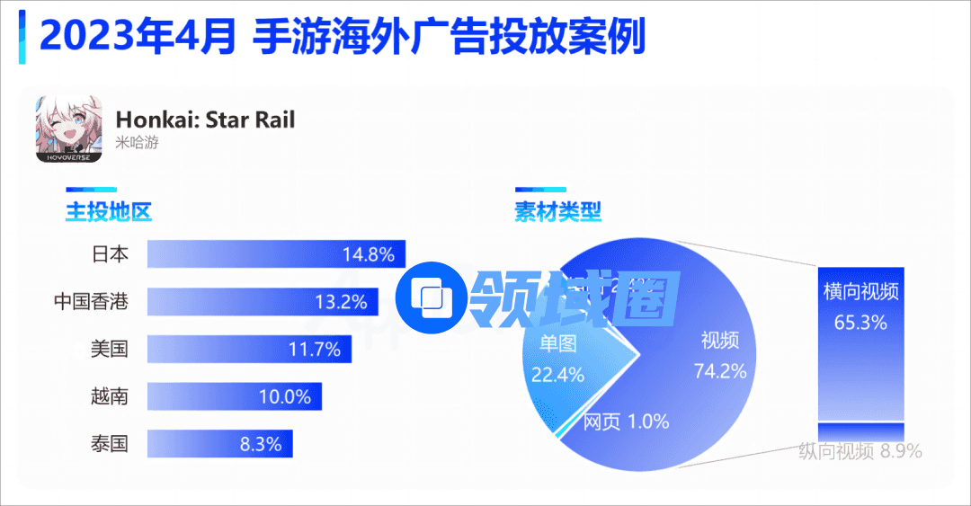 东南亚如泰国和越南是《星穹铁道》较为重视和希望开拓的地区之一。据AppGrowing,越南(10%)是《星穹铁道》上线首月买量的主投地区之一,此外还包含日本(14.8%)、中国香港(13.2%)、美国(11.7%)和泰国(8.3%)。不过从收入来看,中国占比最高,其次为日本、美国。东南亚地区在《星穹铁道》的下载量及收入排名中仅为中游。