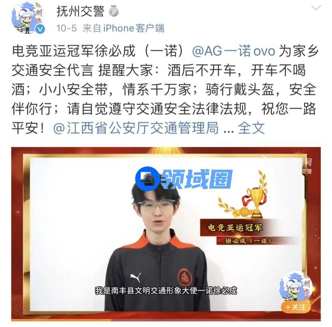 而王者荣耀项目冠军选手一诺,更是成为了家乡南丰的文明交通形象大使。