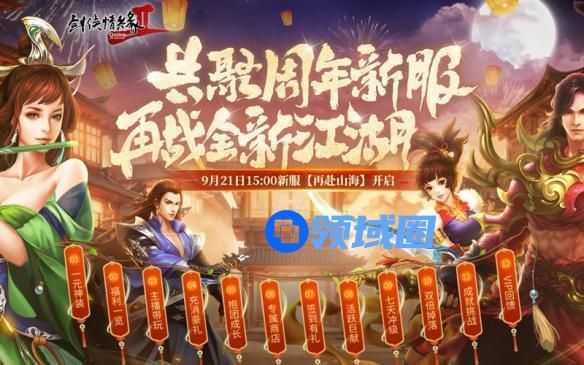共聚周年新服,再战全新江湖!9月21日下午15:00,十八周年新服“再赴山海”准时开服,十二大新服活动,福利加码历程调优,这一次更加轻松玩!
