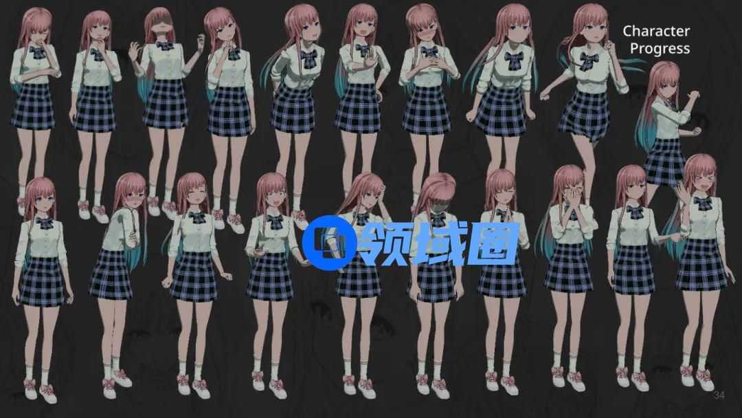 《永夜》给玩家提供了三位可攻略的美少女,有脱胎于韩国爱豆文化的宥娜,在人物设计中使用了二次元动画中常用的粉毛,再加上JK制服,很符合动画中高中生偶像的形象。