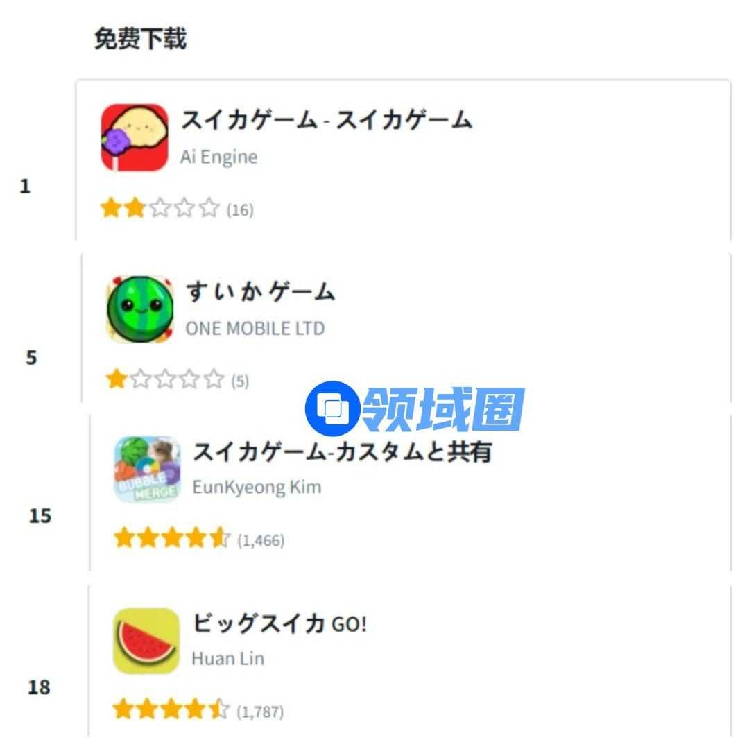 近日,茶馆发现日本榜单居然被我们熟悉的《合成大西瓜》血洗了。