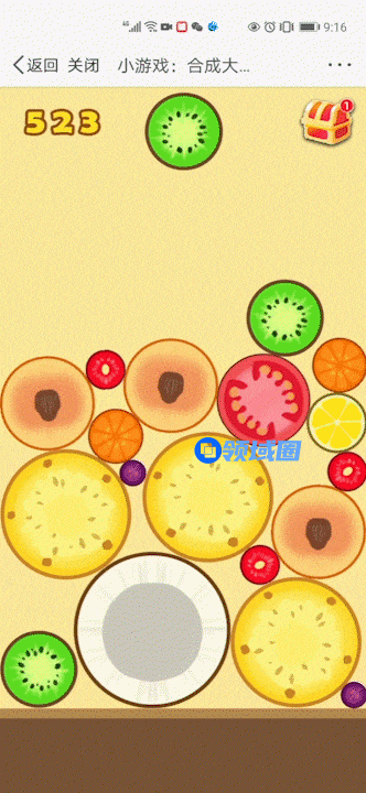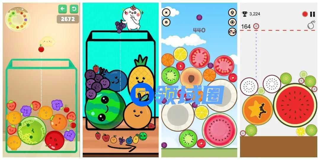 尽管界面有所不同,但游戏核心玩法与《合成大西瓜》大同小异,玩家需要通过移动水果元素,使其在合适的位置下落,碰撞到框中已有的同类水果,即可合成更高级水果,并获得对应的分速增长。在这款游戏中,只要玩家得分超过3000,即可算作“成功通关”,通关后游戏将继续进行,直到堆积的水果填满框顶,此轮游戏才结束。