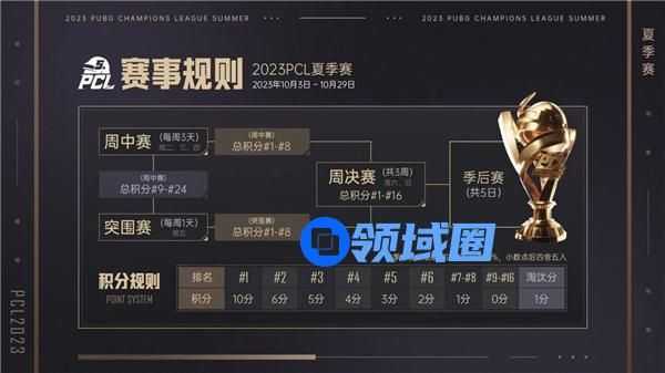 最终在10月25日至29日,通过五天季后赛决出最终的2023PCL夏季赛总冠军,同时还将揭晓2023PGC的参赛名额。冠军奖杯和世界赛门票最终将花落谁家,我们一起拭目以待!