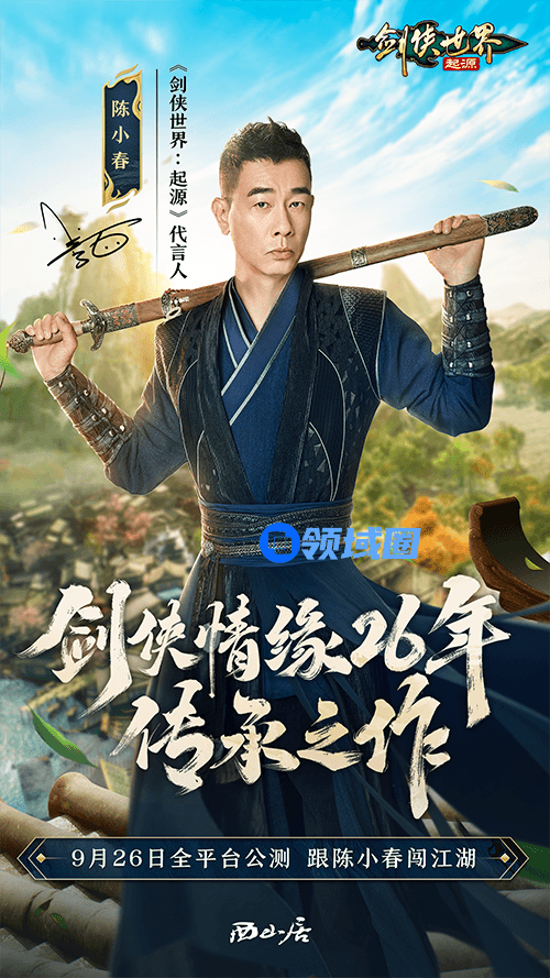西山居剑侠情缘26年传承之作《剑侠世界:起源》9月26日10:00全平台公测,400万剑侠玩家预约,共赴江湖。《剑侠世界:起源》今日官宣品牌代言人陈小春、徐少强,经典武侠明星 X 剑侠情缘26年传承之作,带你梦回江湖起源时代!