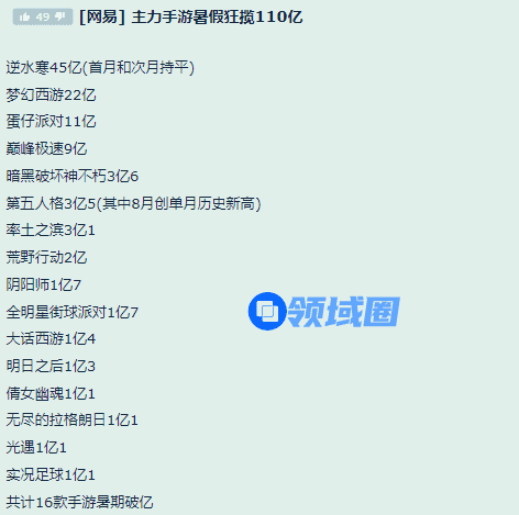 NGA上一篇讨论网易暑期档游戏收入的热帖,引起了我的关注。