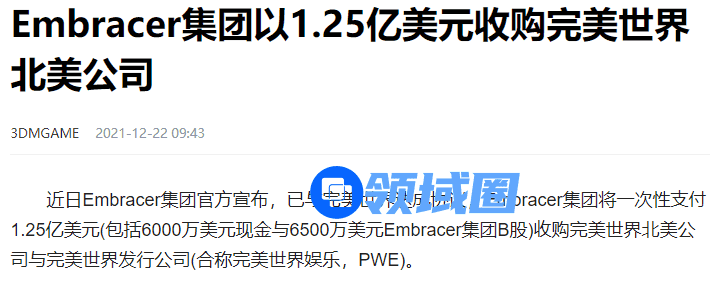 出海先行者完美世界,也曾通过并购在海外建立研发基地,但最终在这轮战略收缩期中将其出售给了Embracer Group。