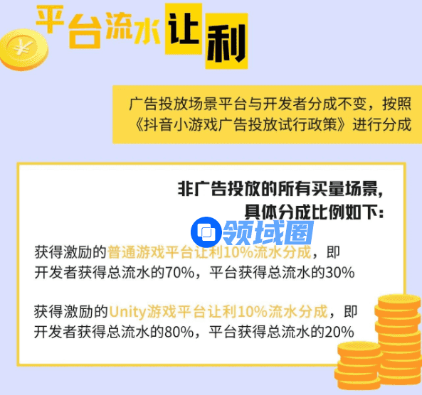 值得注意的是,本次活动的激励奖励是实在的平台流水让利,在非广告投放的所有买量场景下,获得激励的普通游戏将获得平台让利10%的流水分成,也就是说开发者可以获得70%的总流水;Unity游戏将进一步获得平台让利10%的流水分成,即开发者最终可以获得总流水的80%。且游戏中的优质游戏还将额外获得中心化曝光、达人撮合、入口干预等更多资源扶持。