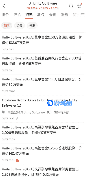 至于为啥突然会在这时候来这么一出骚操作,各路网友也大显神通,发现Unity的不少高管就在一周前出售了手持的股票,其中的原因你细品。