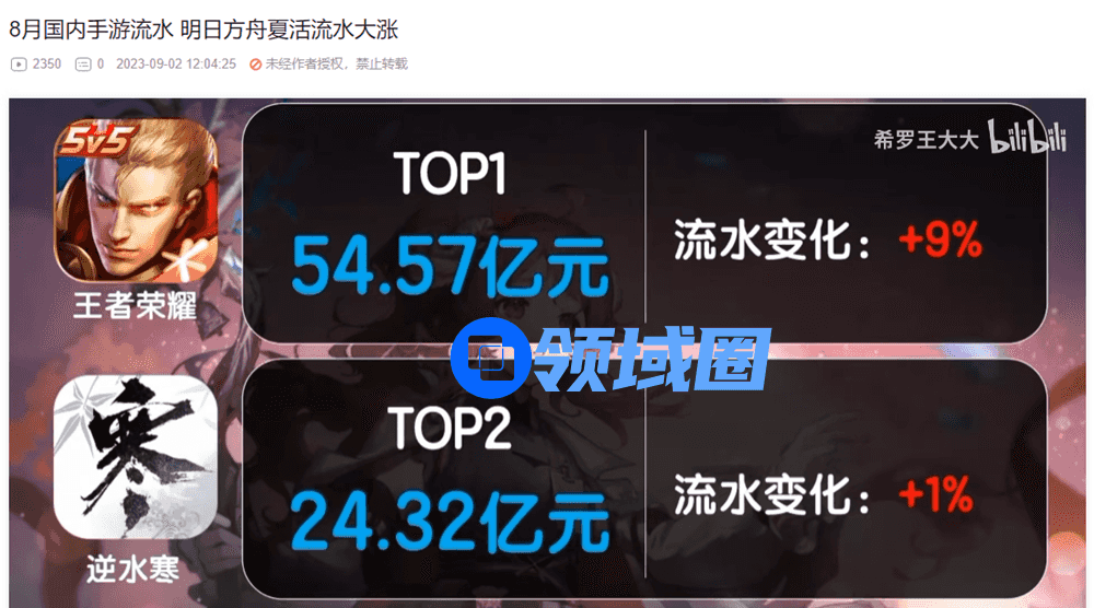 根据B站UP主“希罗王大大”整理的Sensor Tower数据推算,《逆水寒手游》8月流水24.32亿元,环比增长1%。