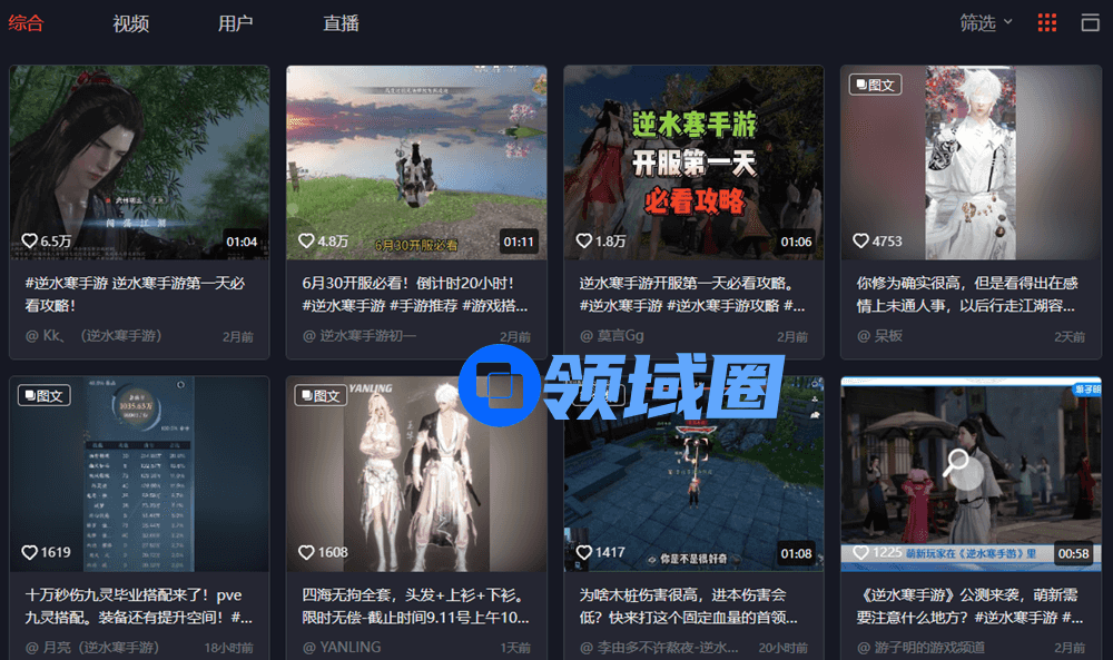 打开抖音,如果你此前有观看过MMO游戏相关视频的话,那么近期刷到《逆水寒手游》的概率很大。游戏茶馆随意搜了搜“#逆水寒手游”话题,发现点赞数量排名前列的都并非官方内容,而是玩家自己制作的内容,包括了新外观不同染色效果、攻略以及名门历史等等。