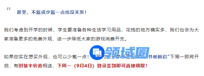 游戏上线以来,主动降低付费外观售价,并补偿此前购买玩家的差价。开学后,官方又主动发放半价券,立劝玩家理性消费,博得了玩家们的好感。
