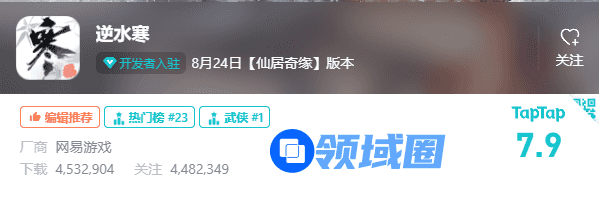 《逆水寒手游》在TapTap上评分,相比8月底时又上涨0.1分,达到7.9分高分,领跑一众商业化大作。所以在社交平台上,玩家对《逆水寒手游》有口皆碑,自来水安利游戏,助推游戏热度一直持续。