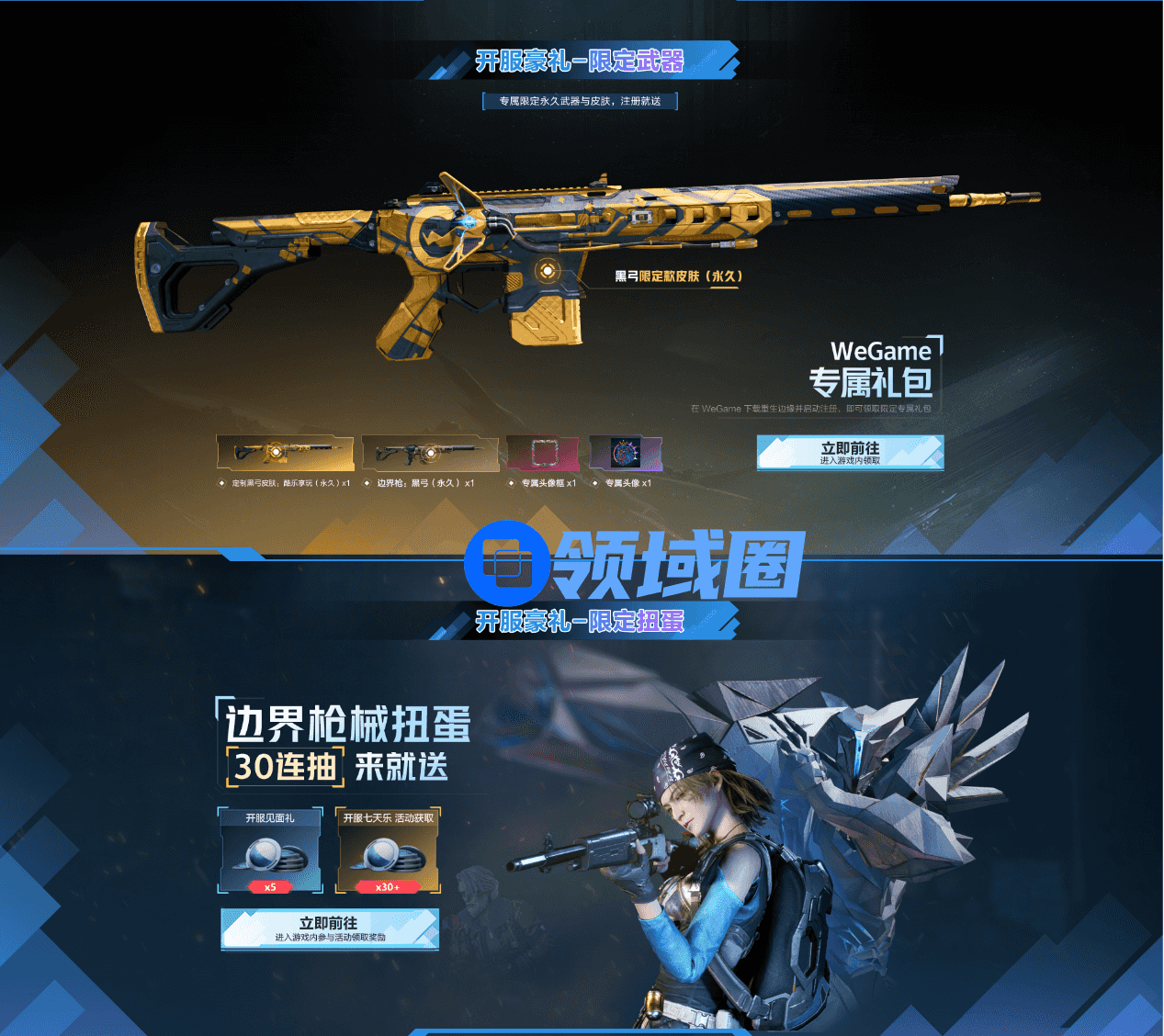 福利不止于此,游戏还准备了两份开服豪礼,其一为WeGame专属开服礼包,内含“永久边界枪:黑弓”“永久定制黑弓皮肤:酷乐享玩”、永久限定专属头像与头像框。