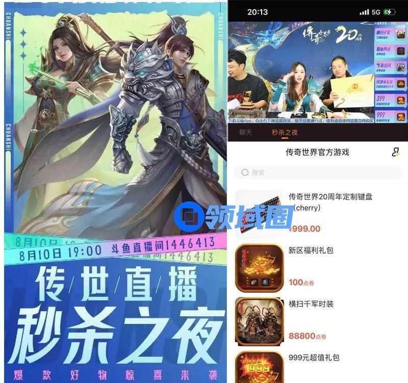 “传世直播秒杀之夜”获得斗鱼热门推荐