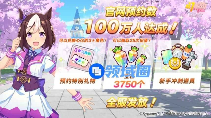 为庆祝游戏达成100万预约里程碑成就,所有登录游戏的玩家均将获得预约及额外追加奖励,累计包括【宝石 x 3750】、【新手冲刺3兑换券 x 1】、【金币 x 100000】、【协助积分 x 50000】、【闹钟 x 45】、【能量饮料30 x 45】以及【女神像 x 30】!