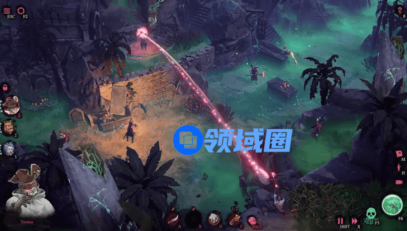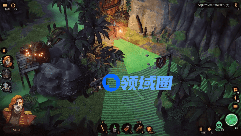 而在今年发售的新作《影子诡局:被诅咒的海盗》(下文简称《影子诡局》)中,Mimimi希望确保频繁读档成为游戏的有趣部分之一。为了实现这个关键的设计目标,开发团队创作了能够为角色“穿越”提供合理解释的故事,同时还将存盘、读档与游戏UI进行了深度整合。这些做法既有助于鼓励玩家反复尝试,又使得Mimimi可以更加自由地创造更复杂、更具挑战性的潜行策略空间。