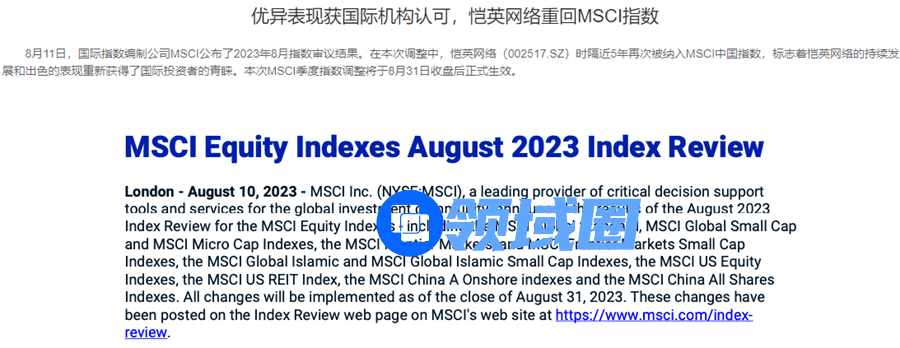 得益于显著的发展成果,恺英网络投资价值获得了资本市场认可。今年上半年,恺英网络纳入MSCI中国指数及深证成份指数样本股,未来发展成果及盈利能力得到专业投资机构的肯定。