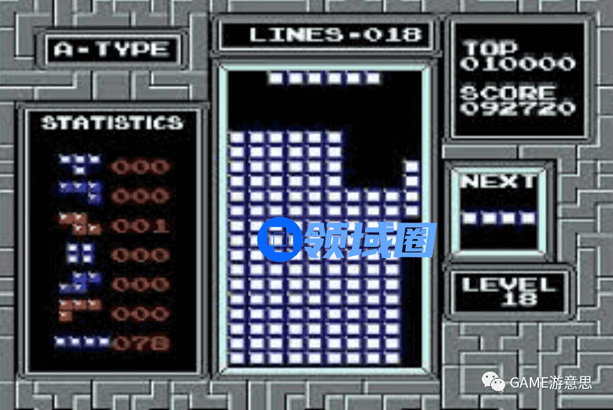 在最经典的《俄罗斯方块》(1989年NES版本)玩法中,玩家所追求的是分数。玩家需要在Gameover(方块堆满屏幕)之前,尽可能地获得高分。而高分的获得方式主要是两种,一种是单次消除更多的行数,一个存活更多的关卡数(也就是波次数)。