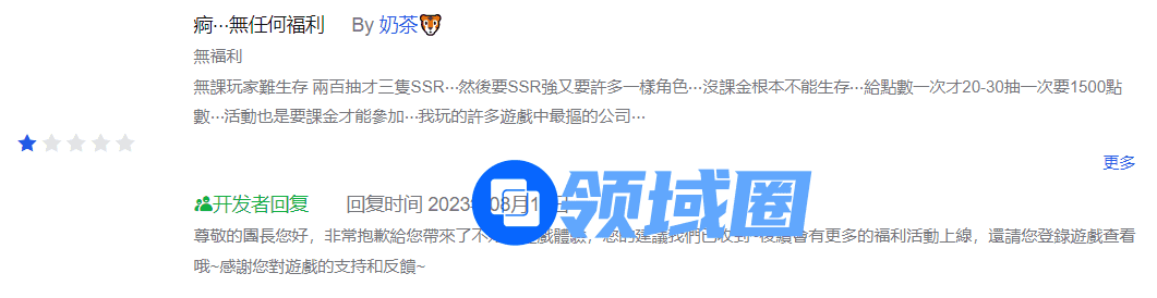 翻看谷歌及App Store的评论区,其中存在不少提及以上内容的玩家反馈。或许联系今年的游戏测试舆论风波中,《铃兰之剑》的卡池炎上事件的规模只是一场“毛毛雨”,但考虑目前仅为国际服的港澳台地区的小范围上线,这也让喜爱这款游戏的玩家不免为其捏把汗。