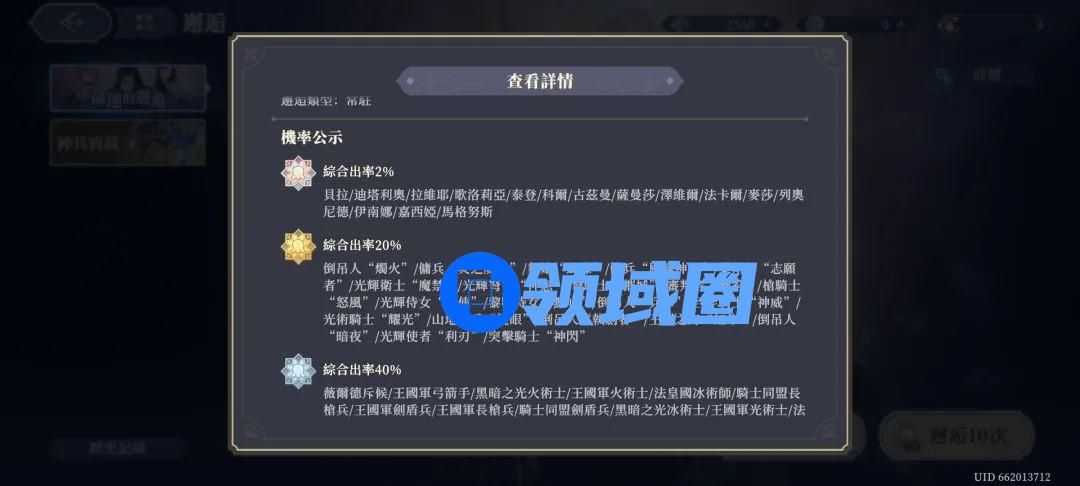 打开《铃兰之剑》常驻卡池,可看到常驻卡池传说级别(SSR)综合出率为2%,再加上200抽保底的设计,一位常年征战二游市场、对卡池爱恨交织的玩家小W告诉茶馆,“其实还好”。据他所说,《碧蓝幻想》保底300抽,SSR出率为3%-6%;而《FGO》(命运冠位指定)同样大约300抽保底,1%的五星出率;《铃兰之剑》的综合出率尚且不算离谱。