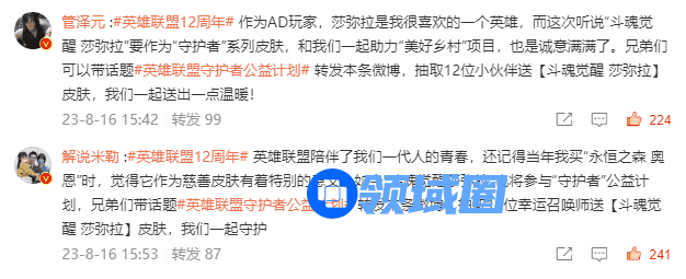 随着英雄联盟公益手册正式发布,一股“我们是联盟”的公益热潮也再次席卷网络。在《英雄联盟》官方微博官宣消息后,管泽元、余霜、希然、骆歆、wawa、米勒等一众人气解说主持也相继转发,并留言分享独属于自己的公益记忆。
