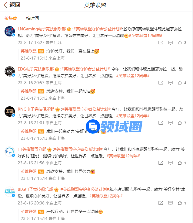 除了来自台前幕后的工作人员,一直奋战赛场的电竞俱乐部也参与了此次英雄联盟公益手册的转发当中,并激励了更多的粉丝和普通玩家参与其中——来自全国的热爱,将最初的涓涓细流汇聚成滔滔江水,一如《英雄联盟》公益事业14年来发展的缩影。