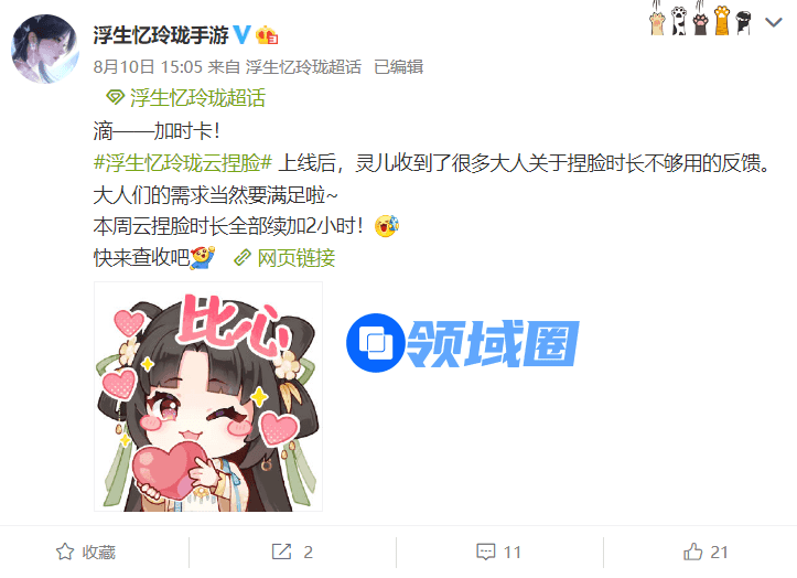从测试体验及此次开启的云捏脸活动来看,《浮生忆玲珑》之所以高调也因为确实有两把刷子——因为玩家发现连睫毛都能分段塑形,再加上妆、挽发……对于捏脸熟手,仅限1小时的捏脸时长只是弹指一挥间。也正因此,活动上线仅两天后,就被玩家“软磨硬泡”加时长。后来项目组也迫于玩家的喜爱,将一周一小时的捏脸时长增加至3小时。