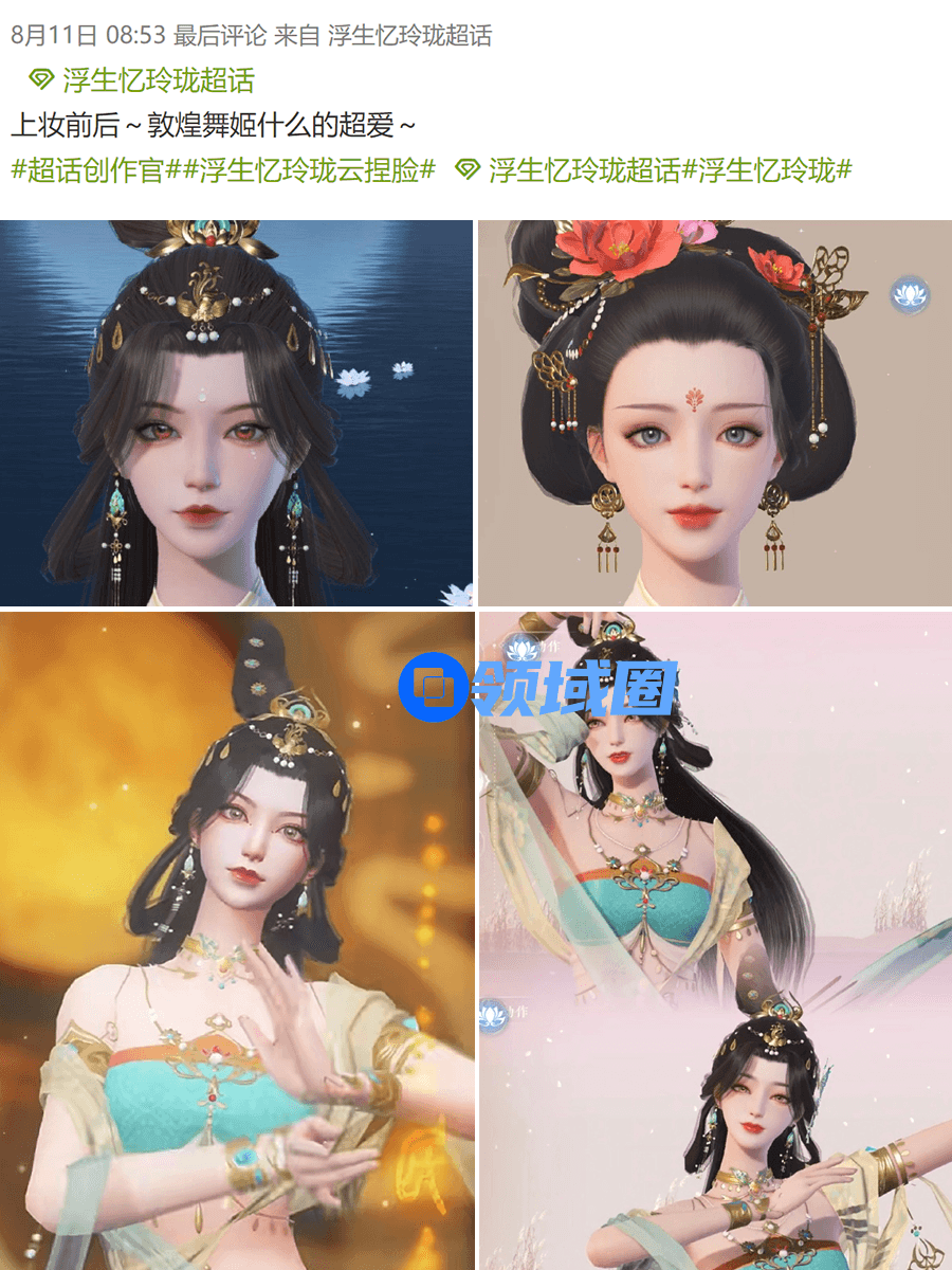 浮生忆玲珑超话里,玩家争奇斗艳,已经自行开启了敦煌舞姬、娇俏甜妹、时髦女郎、异域佳人等多个分会场,玩家只恨捏脸时长太短。