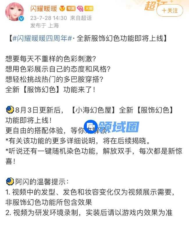闪暖的染色系统由于上线时间短,并没有给全部时装做染色适配,目前可染色的时装数量很少,并且头发的染色是另外的体系,妆容不可染色。