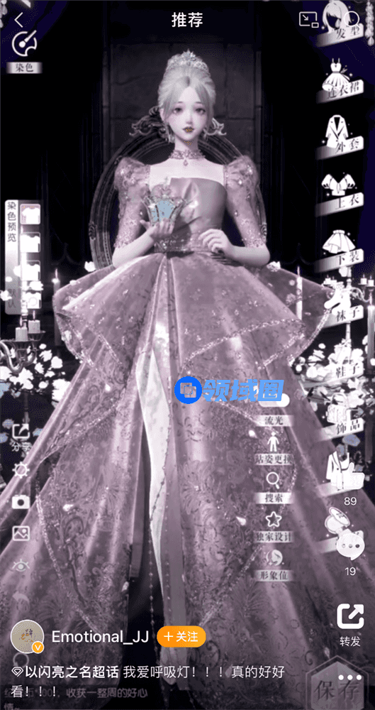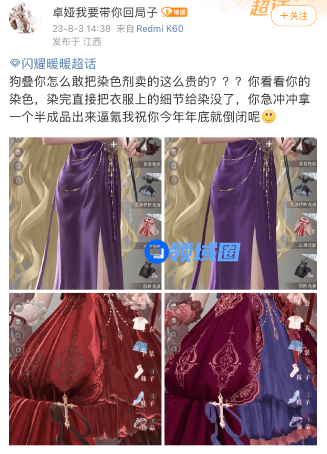 其他闪耀服装也是类似的效果,甚至下图这件本身带渐变的裙子,在染色后渐变消失了,还不如不染。