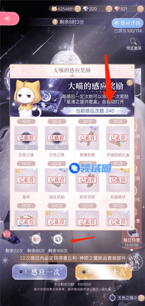 以闪暖周年庆的独角兽套装为例,想要对该套装进行染色,需要抽取一共17个部件,以及2张卡。如下图抽取的次数所示,目前一共抽取了240次,套装集齐了,但是第二张卡保底需要88抽,对于资源不够的玩家来说,需要充值才能达到染色的门槛。
