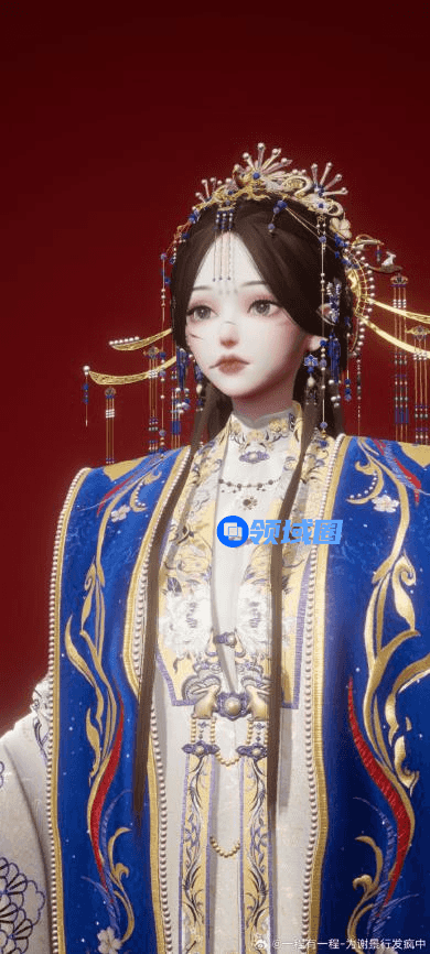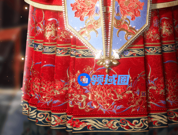 拉大看的话,这套鸾俦夙缘套装细节拉满了。红色作为婚服的基础色,又加入了象征吉祥富贵的牡丹暗纹,霞帔以蓝色做底,同样元素的牡丹花呼应嫁衣主体,红蓝的cp组合在这里只有满满的高级感。