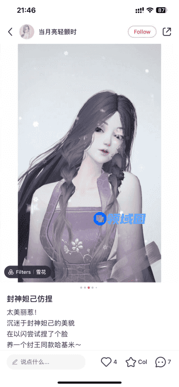 而得益于游戏从捏脸到服装搭配、再到自由染色的超高自由度功能,玩家可以在游戏内完成任何想cos的角色。甚至在各大社交媒体上,都涌现出了非常多的UGC作品。不论是《长月烬明》全员到场,还是化身成为头戴凤凰花环的小妖,都令人眼前一亮,仿佛是角色本人的数字分身,这沉浸感拉满了。