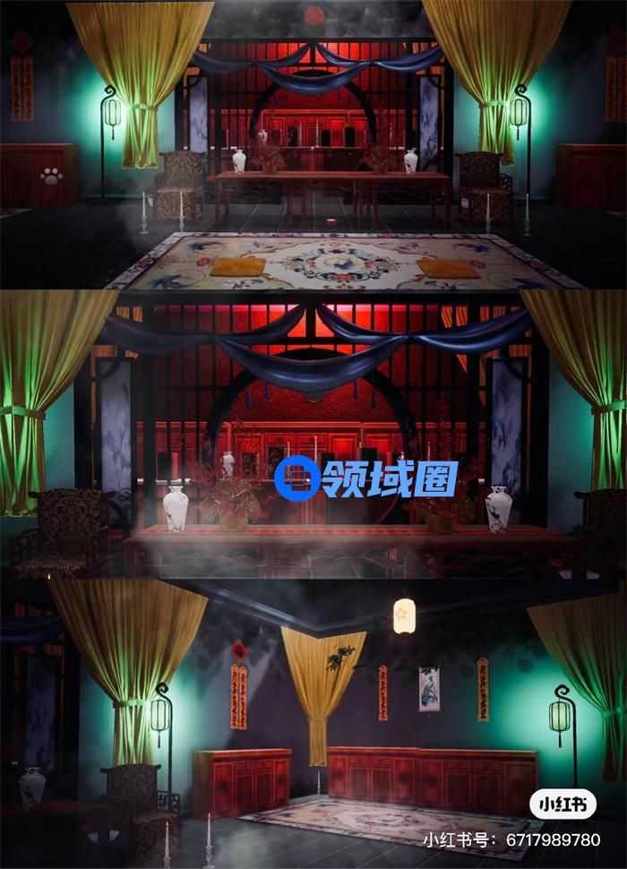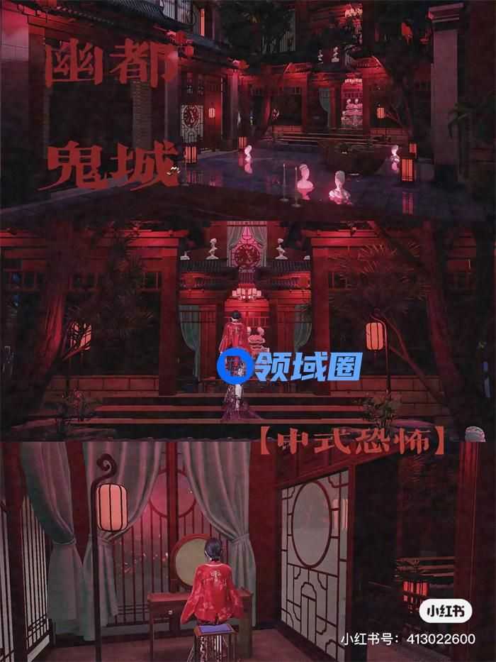 把家园打造成木质结构的古典建筑,再配上昏暗的红色蜡烛光,这中式恐怖的氛围感不就来了!