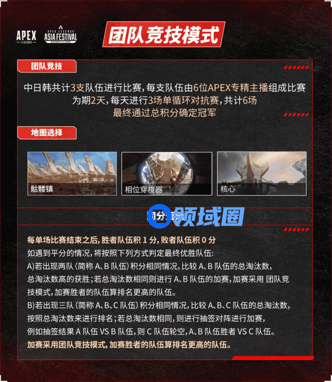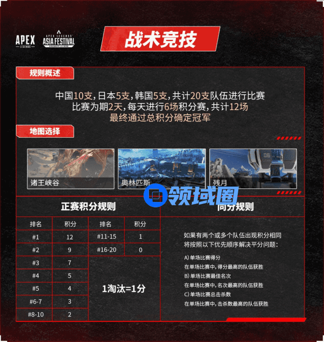 《APEX亚洲尖峰嘉年华》的正赛部分包含两个赛道:战术竞技模式赛道(主赛道)和团队竞技模式赛道(副赛道)。