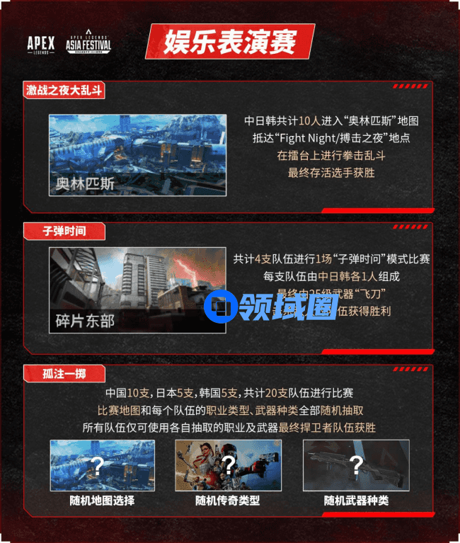 获取赛事详细信息,可访问www.apexasiafes.com。更多赛事精彩消息,关注嘉年华微博@《APEX亚洲尖峰嘉年华》。